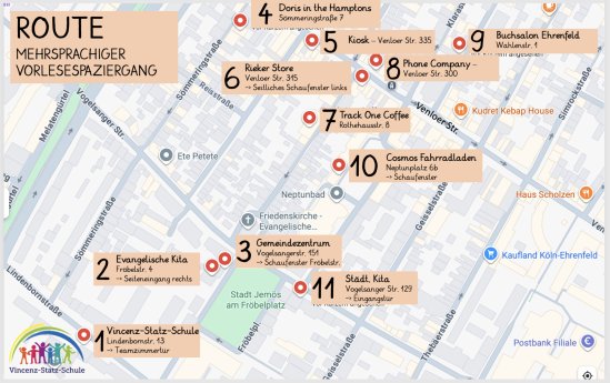 Ab Montag, den 22.09.2025 gibt es im Veedel Ehrenfeld einen mehrsprachigen Vorlesespaziergang zu dem Bilderbuch "der kluge Fischer" von Heinrich Böll. Kinder aus Kölner Grundschulen haben das Bilderbuch in 13 verschiedenen Sprachen vertont.